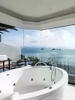 InterContinental Samui, a clifftop resort with stunning 180° sea views, offers spacious rooms with comfortable beds and a balcony with daybeds for sunset viewing. The highlight is the glass-enclosed Jacuzzi with romantic sea views. Perfect for couples or those seeking a private getaway, the tranquil atmosphere offers cool breezes all day long, allowing you to fully appreciate the beauty of Samui. #IntercontinentalSamui #LuxuryEscape #SeaviewGoals