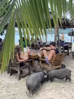 We opted for a half-day tour to Koh Pig, and the nearby snorkeling spot is Koh Tan. It's about a 30-minute boat ride from Koh Samui, and there's a 50 baht per person entrance fee. There's a restaurant on the island, though the price can be a bit steep. They also offer food for the pigs for 50 baht per bag. There are plenty of places to sit and relax, swim, and take photos.