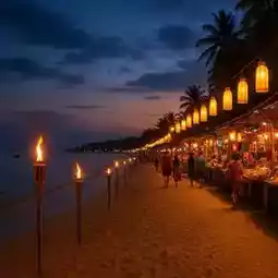 🌊✨ Tonight at Fisherman's Village, Samui, the atmosphere is irresistible! Start by checking in at the classic walking street sign, then stroll along the seafront to browse the shops. 🛍️