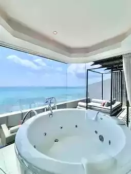 From the bedroom, living room, and the extended balcony overlooking the sea, to the standout feature—the bathroom. Unlike other rooms, this bathroom boasts a jacuzzi tub right in the center, allowing you to soak while enjoying a 180-degree ocean view. In the evening, you can also enjoy a clear view of the sunset right from your room.