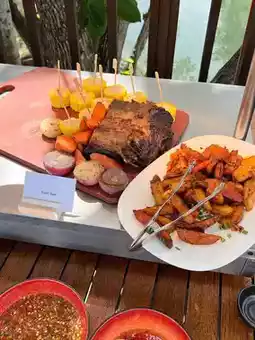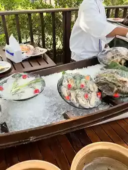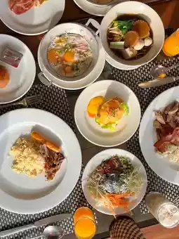 The hotel restaurant offers a wide selection of dishes, from Thai to international cuisine. The food is delicious and the prices are a bit high, but it's worth the price.