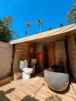 Since the room is a tent โบ The bathroom in the accommodation is an outdoor open space on the top. ๐ Super close to nature ๐ For those who know that they are spicy ๐ฅ that their blood is delicious ๐ฉธ Bring mosquito repellent spray, Sofelle, etc. ๐คฃ The accommodation also has sprays prepared in the room, but the tubes are a bit small, not satisfying 555 ๐ฃ๐ฆ The bathroom lights are quite dim for us. For those who want to soak in the tub at night I recommend bringing some small fake candles and placing them in many places. It will definitely add romance and make your photos look great. During the day, the room will be a bit hot, but it's not a problem because we'll be hanging out at the pool all the time. LOL
