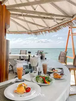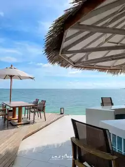 The bar, swimming pool, and restaurant have a sea view. It's so much fun to take pictures. ๐ฅ So beautiful!!