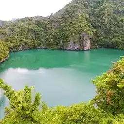 One day trip, take a speedboat to the island, Angthong National Marine Park, and we stopped at "Talay Nai" to relax as we wished, or walk up to a height of 150 meters to see the lagoon view and the surrounding high angle view. The view up was very good, and we also walked inside with rocks on both sides. The guide told us to crawl in, which looked strangely beautiful. The person taking the picture from above took the picture down, which looked very dimensional.