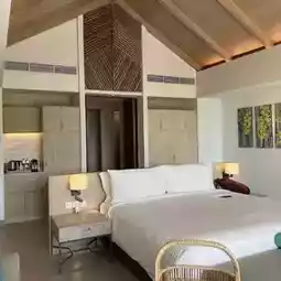 Lovely hotel, decorated in a tropical style, shady. The pool villa beach front room is very nice, large, on the beach, has a swimming pool, but the beach in this area may not be beautiful, but still has high privacy. The hotel is a bit far, suitable for relaxing in the hotel rather than going out. But this place is near Koh Madsum. You can take a boat from the hotel or a nearby pier. There is a medium-sized fitness room, but the equipment is very good and varied. This area of the beach is not suitable for swimming, but it is suitable for paddling and playing SUB board. #Koh Samui hotel