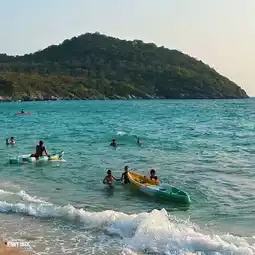 🌴 ✨#HatThamPhang, Koh Sichang is another place to visit Koh Sichang. You must stop by this beach because it is a beach where you can swim. The atmosphere is good. The vibe is great. There are hammocks, seats, restaurants, and boats for you to paddle and chill. Come during the sun, the water is crystal clear. Or come during the sunset, the light is so beautiful.