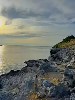 #GetDiscountWithoutLuck Another popular photo spot that people visiting Koh Sichang must come to take a check-in photo here is Laem Chakraphong. The Unseen spot is a rocky point that juts out into the sea. When taking a photo, you will see a seat on the rock that is a sharp point. People will sit and dangle their legs to take photos. It is a unique photo spot on Koh Sichang. Anyone who plans to visit Koh Sichang must come to this spot. It is very beautiful. #KohSichang #KohSichangYouCanTravelAlone #Chonburi #VisitChonburi