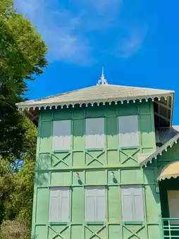 This seaside wooden house on Koh Sichang is an old colonial-style building that retains its classic beauty. Its wooden structure and unique carved patterns make it a must-see attraction for anyone visiting Koh Sichang. To get to Koh Sichang, take a 40-minute ferry ride from Sri Racha Pier. From there, you can rent a motorbike or use the Skylab to explore the area. The peaceful atmosphere around the house makes it perfect for strolling, taking photos, and learning about the fascinating history connected to Koh Sichang. 📷✨