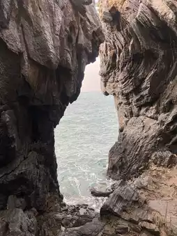 A unique viewpoint featuring a "cave" or rock formation with a hole that opens out to the sea. When looking through the hole, you can see a stunning view of the sea or open sky—making it a perfect spot for photography. 📸