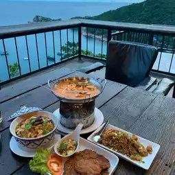 The hotel has a restaurant. The owner's mother cooks the food herself. It's very delicious. The more you eat and look at the view... oh my!