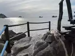 A secret corner of Koh Tao at Shark Beach. It takes a while to get there from the pier. I usually stay on the Sairee Beach side, which is on the opposite side. This corner is quite private, but not completely private. Tourists can walk from the resort, Ta To Resort. You can rent goggles and snorkeling equipment from the accommodation. Or if you stay at this accommodation like us, you can borrow them because you can go down to the beach, which is not very big. We can swim from the water to snorkel and see the coral. On lucky days, you will see small sharks and turtles from this beach. The photo corner of this beach is very beautiful. Waking up to watch the sunrise is the best.