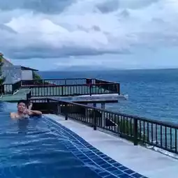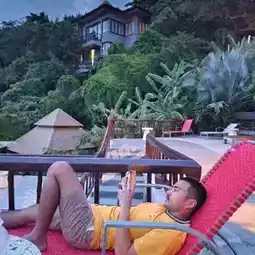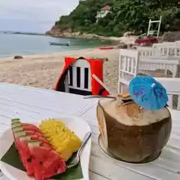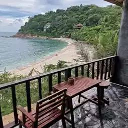 This resort is located on Koh Tao. There is a car to pick up and drop off at the pier both on the day of check-in and check-out. The service fee is included in the room rate, but you may tip the driver. This is up to you. You can rent a motorbike to drive in and out if your driving skills are okay with the narrow and steep road conditions. I personally like it very much. But I would like to recommend that it may not be suitable for the elderly who have to walk up and down high and steep stairs. Walking down to eat breakfast each time is tiring. But the view is magnificent. You can dive from the resort's beach, but you have to rent equipment from the resort. As for the rooms, there are many types and styles depending on the budget. For 2 people or for a family, a small room or a house #Koh Tao accommodation #Koh Tao #Koh Tao travel #Koh Tao sea
