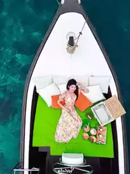 The Journey is a beautifully decorated head-turning boat in a minimalistic style. Content creators will definitely love it as it is stunning from every angle and has a very chill atmosphere. We can stop by to admire the beautiful world-class sea view and experience the underwater world by diving to see the beautiful coral reefs of Koh Tao.