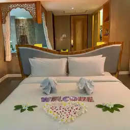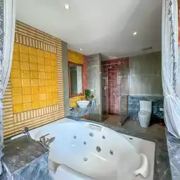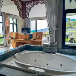 A luxurious honeymoon suite with a private balcony for a romantic feel. With a Jacuzzi in the room