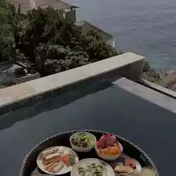 The most beautiful pool villa with a 360-degree view from the room. The sea in front and the mountains in the back. So awesome✨