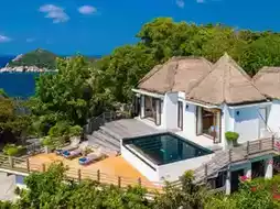 Cape Shark is located in one of the most beautiful locations on Koh Tao. The signature white villas.. have stunning views of Shark Bay. Each villa has a private infinity pool. Inside the villa, there is also a private balcony with a dining area and a relaxing sunbathing area. Enjoy the atmosphere of the Gulf of Thailand, which is as beautiful as the Andaman Sea. #Koh Tao accommodation with a beautiful view and comfortable sleep