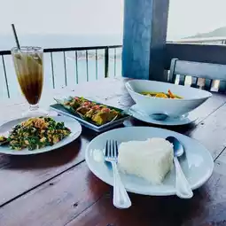 Atmosphere/Location - A restaurant with delicious and spicy food in the style of southern food and beautiful views. The way up is quite steep because the restaurant is on a hill, but it's worth it when you get there. Especially if you come to eat in the evening, the sunset must be very beautiful. Even at noon, the sun is strong, the view is still beautiful. As for the taste of the food, there's no need to describe much, every menu is delicious, especially the stir-fried morning glory with eggs, very delicious, fragrant with the smell of the pan, plus crispy shrimp to chew, and the spicy yellow curry eaten with soft rice is very delicious. This meal is truly a joy ❤️ #DeliciousRestaurantKohTao #DeliciousRestaurantWithBeautifulView #KohTao #TakeYouToTheIsland