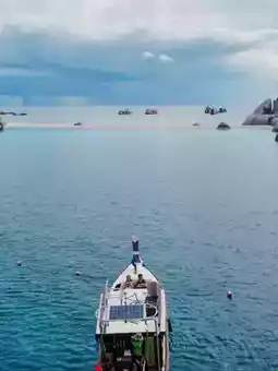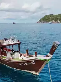 #Boat trip ⛵️🏖️ Experience a wooden boat trip, content worth millions of views!!! A long-tailed wooden boat decorated in a luxurious tropical style that will take you to relax with the nature of Koh Tao. Dive to see coral reefs and various aquatic animals. You may even meet Uncle Turtle swimming with you. You can also sunbathe on the boat while sipping drinks, eating, and enjoying the sea of Koh Tao. 🏝