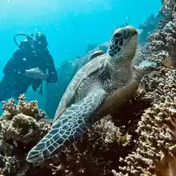 The highlight here is, that you dive from the shore & get one of the most iconic dive spots on the island! Four turtles residence here & a big swarm of fusilier is housing under the boat of Calypso. If you go for a night or sunset dive be sure to look for 🐙 octopuses between the stackhorncorals, as there are (not joking!) hundreds of tiny reef octis.