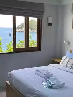 The villa is quite impressive, with panoramic views of Thian Beach and the sea right in front of the villa. The area is stunning, and I even spotted baby sharks and turtles. The beach is just a short walk away, and there are plenty of activities to enjoy.