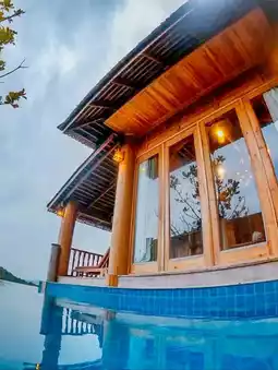 A luxurious beachfront retreat with a peaceful atmosphere, surrounded by private nature, and a million-dollar view. You can see both the ocean and the sunrise from the accommodation. 🌅