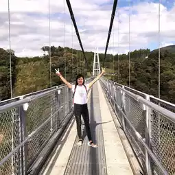 It used to be the tallest suspension bridge in Japan, but now it's the second or third tallest. Maybe it's to promote the town, but there are so many bridges with different heights and lengths that it's hard to understand. Even if it's not the best in Japan, it's still the best if you can enjoy the spectacular view. I think the toll is also reasonable at 500 yen round trip. There is an observation deck on the other side of the bridge, so it's quite a walk, but it's worth going. It's worth going because it has a large free parking lot like a service area, souvenirs, and restaurants.