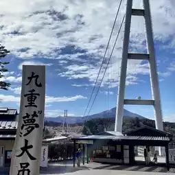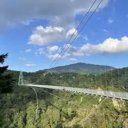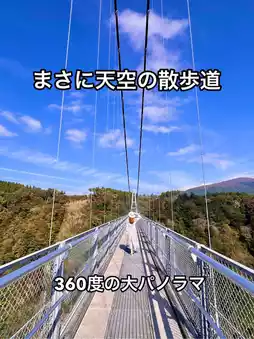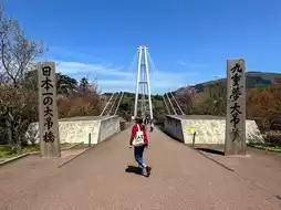 Opened in 2006, Kokonoe Dream Suspension Bridge is the tallest pedestrian suspension bridge in Japan. The view of the Kokonoe mountain range is beautiful, but when you look down into the valley, you'll feel your legs shaking as you realize how incredibly high you're standing.