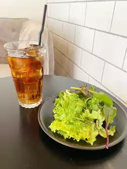 The salad and iced tea were brought out,