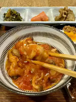 The chicken stew with tomato sauce and other side dishes were all delicious ♡