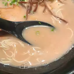 The noodles in the creamy soup are super thin and straight from Fukuoka.