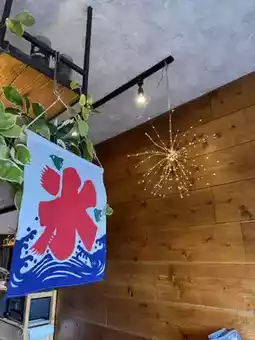This cafe specializes in natural honey, but they also have an eat-in area and shaved ice.