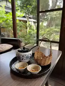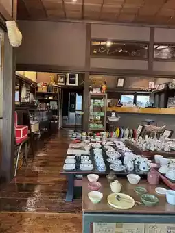 Biwa-ya offers a view of the courtyard from its windows, and the interior is filled with antique accessories and furniture.