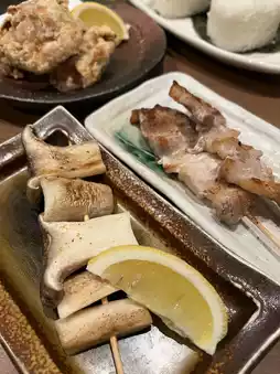 The skewers grilled over binchotan charcoal are popular