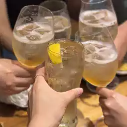 Various drinks available: Sake (also by the glass), Highball, Beer, Whiskey
