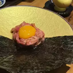 Menu in the photo >> Grilled Mero, Grilled Beef Tongue, Grilled Chuck Flap, Rolled Omelette, Yukhoe
