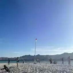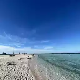 this island is smaller than a football field. The crescent-shaped pinkish sandbar is surrounded by shallow turquoise waters that look too good to be true!
