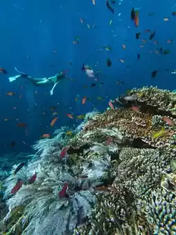 ❺ Manta ray🐟: You will have the opportunity to swim with manta rays up to 4 meters wide, and if you are lucky you may even see a manta storm. What an intimate tour!