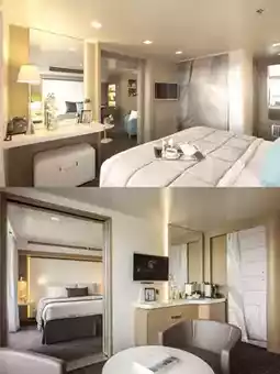✔️ 95% of cabins feature private balconies, along with amenities like a pool, outdoor bar, gym, and spa.