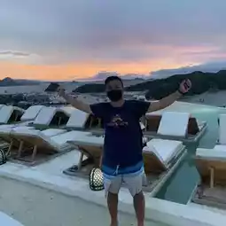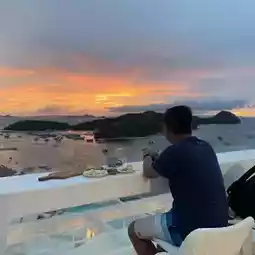 First time here, wow, it's so cool. The hotel design is top-notch, and the view is even more so. It feels like Santorini. The food is generously portioned and definitely filling, and it's delicious. The hotel is decorated in white, so it looks clean, even though some parts of it are still under construction. But it's already really nice.