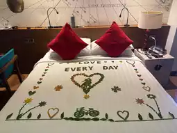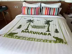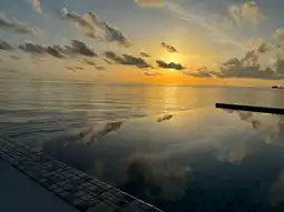 We had a fantastic stay at the Mercure Kooddoo. Your vacation begins the moment you arrive at Kooddoo airport. We were greeted by Ali, who took care of us and escorted us directly to our overwater villa with a private pool. There was no long lobby wait to check in; it was done in our room, which was a nice touch. Ali also assisted us throughout our stay whenever we needed anything. The room was spotless, thanks to Jamileeh (I might have spelled his name wrong), who created stunning handmade decorations on the bed. The food was delicious and fresh, with chefs who are both talented and friendly—they truly aim to please and succeeded! Special thanks to Sameera, our waiter at Vista, who made our stay unforgettable with his smile and jokes! At the bar, we enjoyed tasty mocktails and cocktails from the excellent bartenders. Overall, the hotel feels like paradise, boasts a stunning view, and is impeccably clean. If you're a certified diver, Marty at the dive center can show you the area's underwater wonders, and it's worth it! Don't miss snorkeling by the reef in front of the bungalows. It is in excellent condition, teeming with colorful fish, reef sharks, large nurse sharks, turtles, and sometimes you can spot spotted eagle rays. If you get the chance to stay at this hotel, don't hesitate because it’s truly amazing!