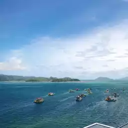 You can see many ships parked on the sea🚤🛥️🛶