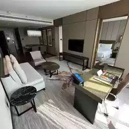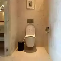 The room had a guest toilet, a big dining table and a spacious living room with a nice study table. The bedroom was HUGE! With a big comfortable king bed. The toilet was also renovated beautifully and had an amazing bathtub that could fit 3 if you wanted!