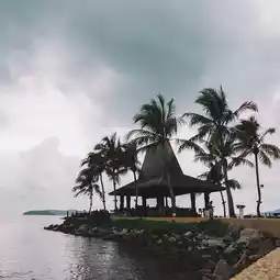 Located on the west coast of Kota Kinabalu, the beach is lined with rows of palm trees and casuarinas. Unfortunately, it was cloudy on the day of our visit, the dusk was completely covered by clouds, and we did not encounter a sunset. If you are interested, remember to check the weather first.