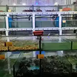 You can order by pointing at the menu with photos, or you can choose your favorite ingredients from the fish tank and have them cooked for you.