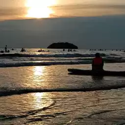 The beach is named after the casuarina trees (Aru trees) that line the shore, providing shade and a peaceful atmosphere. The long stretch of soft and invites leisurely walks, while the gentle waves make it a perfect spot for swimming. Families, couples, friends, and solo travellers can enjoy picnics, beach games, or simply sit back and watch the world go by.