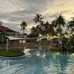 In Southeast Asia, you can relax at a resort with a large swimming pool and