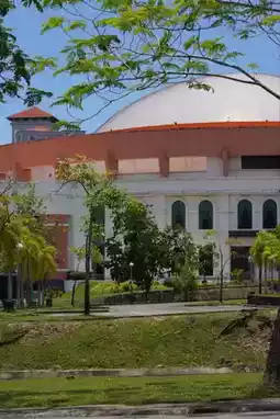 On the right side of the stairs is the administrative hall, a pink dome building, quite special