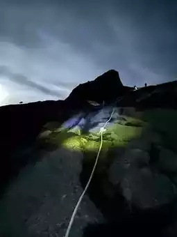 A mistake I made was: I tried to go as light as possible and thus didn’t bring a backpack. I ended up having to hold a trekking pole in my right hand, a water bottle in my left, and stuff my phone, tripod, and gloves into my pockets. It is not hard to foresee that at some point of time I lost some of these belongings from my pockets… And with my frozen, multitasking hands, it was a real challenge to grip the ropes properly while climbing some of the almost 90 degree vertical rock walls in dark.