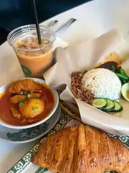 I had Nasi Lemak with Rendang Chicken, while Ann enjoyed a Kaya Butter Croissant, and Patrick ordered the classic Hainan Kaya Butter Toast and Soft-boiled Eggs. Their White Coffee and Cham were truly delightful. We all enjoyed our breakfast and had a nice chill time here.