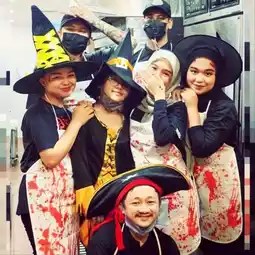 During Halloween season, they have backed up a special Halloween cake design and the waiter/waitress and even the baker wear a spooky costume during this season.